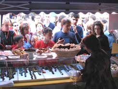 offerti nel centro di Alba, ha proposto in assaggio i suoi cioccolatini